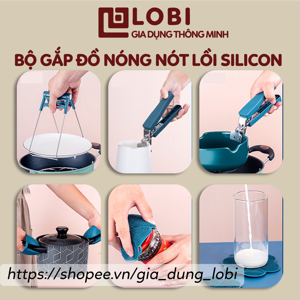 - Bộ dụng cụ nhà bếp chống nóng kẹp gắp đồ ăn nóng, nhấc nồi, miếng lót nồi silicon