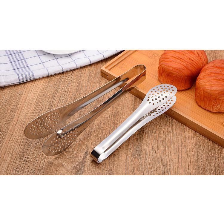 Đầu kẹp có dạng lỗ nhỏ giúp cho đá hoặc thực phẩm không bị rơi khi gắp Kẹp gắp thức ăn là dụng cụ hữu ích trong nhà bếp giúp bạn dễ dàng kẹp, gắp và lật thức ăn. Dụng cụ đơn giản dễ sử dụng. Kẹp được làm bằng chất liệu Inox cao cấp, có độ bền và khả năng chịu lực cao, không tạo ra các chất độc hại ở nhiệt độ cao, đảm bảo an toàn tuyệt đối cho sức khỏe gia đình bạn. Chất liệu Inox cao cấp cứng cáp giúp thức ăn được kẹp chặt bằng một lực vừa đủ, kể cả thức ăn có kích thước lớn mà không làm nát thức ăn. An toàn sức khỏe cho người sử dụng. Kẹp gắp thức ăn được làm từ inox không gỉ, có thể sử dụng ở nhiệt độ cao thấp khác nhau Sản phẩm là đồ dùng nhà bếp cực kỳ tiện lợi cho người nội trợ khi chế biến các món nướng, chiên mà không ngại bỏng hay làm cháy món ăn. Giúp bạn dễ dàng gắp, kẹp, bày biện món ăn, thích hợp với các buổi tiệc nướng ngoài trời. Thiết kế thông minh với tay cầm dài, giúp bạn gắp đồ nóng, đồ nướng một cách dễ dàng Đầu kẹp có khả năng chống dính, giúp kẹp thức ăn chắc chắn, chống trơn trượt hiệu quả. 2 càng kẹp chắc chắn, giúp bạn dễ dàng gắp thực phẩm và không bị ảnh hưởng bởi hơi nóng từ bếp. Bạn có thể kẹp đá, thiết kế ngàm kẹp lớn, chắc chắn, giúp bạn dễ dàng gắp mọi loại đá. Dễ dàng vệ sinh và chùi rửa. Kẹp gắp thức ăn là dụng cụ hữu ích và cần thiết trong gian bếp của bạn.