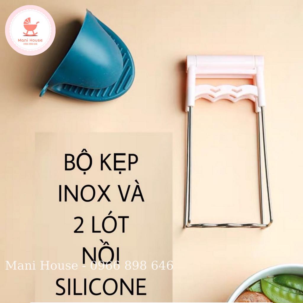 Bộ dụng cụ kẹp inox và lót nồi silicone chống nóng cho nồi nấu cháo