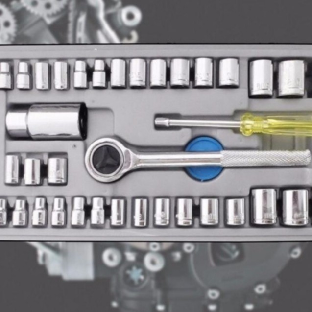 Bộ dụng cụ khẩu mở siết ốc và bugi 40 chi tiết kèm vỏ hộp