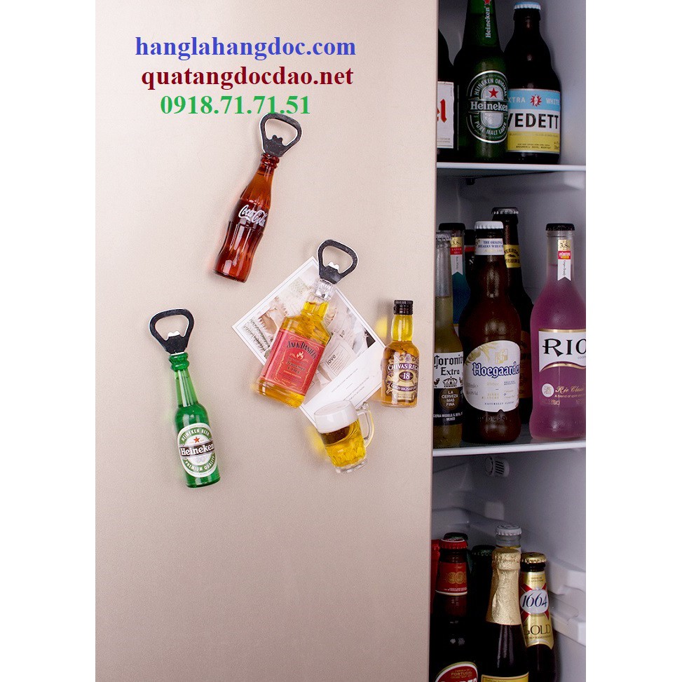 Dụng cụ khui bia, nước ngọt cầm tay hình chai bia, có nam châm hít tủ lạnh độc đáo