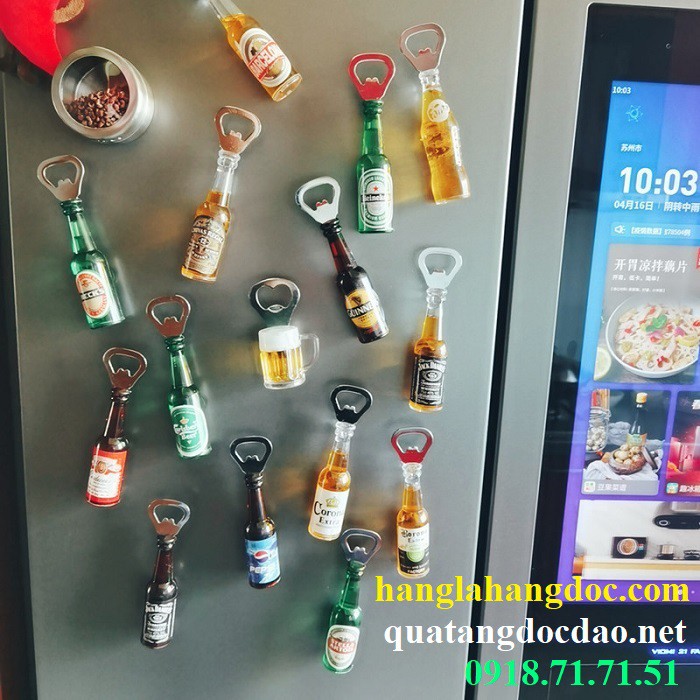Giới thiệu Dụng cụ khui bia, nước ngọt cầm tay hình chai bia, có nam châm hít tủ lạnh độc đáo