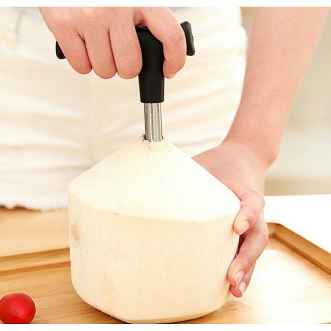 - Cây đục lỗ quả dừa siêu nhanh có khả năng tạo nơi ống hút đẹp mắt cùng lưỡi cắt sắc bén, giúp khui dừa dễ dàng.