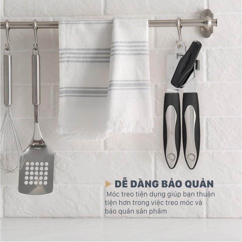 - Với thiết kế móc treo tiện dụng trên mỗi tay cầm và phần lỗ tròn ở đầu dụng cụ khui hộp sẽ giúp bạn thuận tiện hơn trong việc treo móc và bảo quản sản phẩm. Ngoài ra, bạn có thể dễ dàng gắn dụng cụ lên tủ lạnh để nhanh chóng lấy ra sử dụng lần sau nhờ nam châm tích hợp kèm theo.