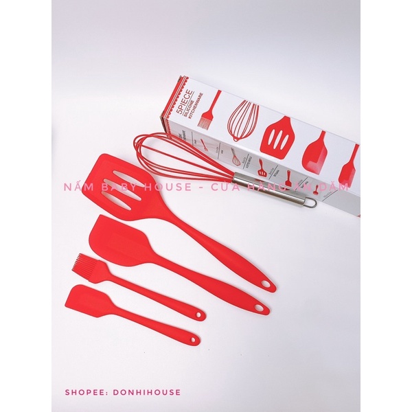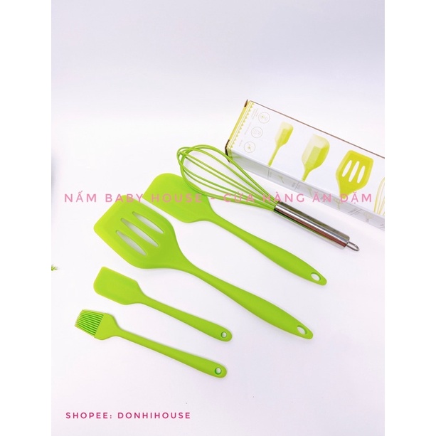 Bộ 5 dụng cụ làm bánh được làm từ silicone an toàn đã được cấp phép an toàn vệ sinh thực phẩm kết hợp với tay cầm bằng INOX tạo nên sự bền chắc của bộ dụng cụ làm bánh.🔸Ưu điểm: