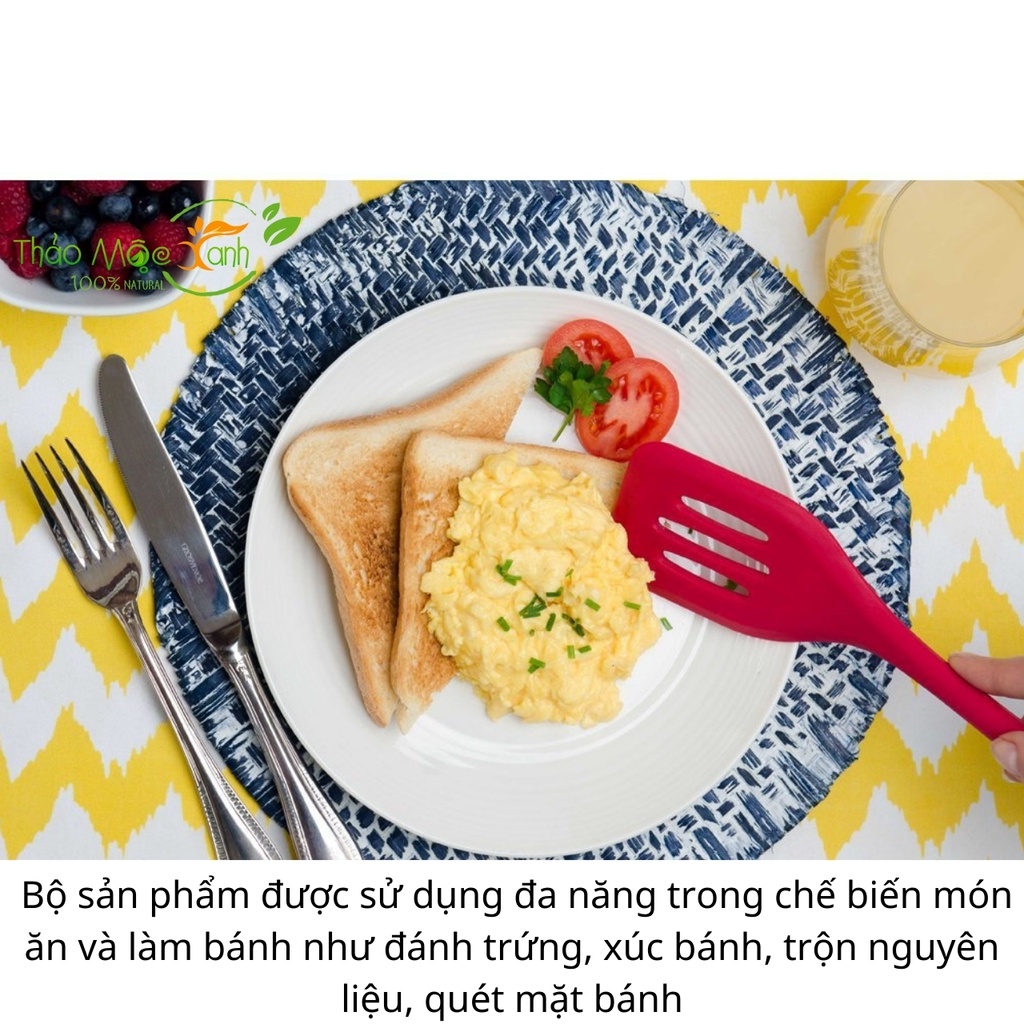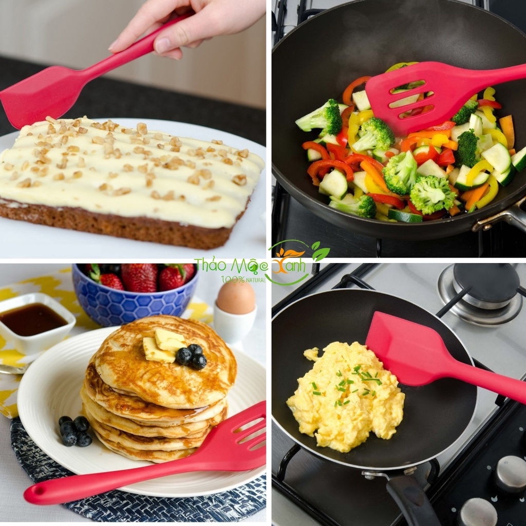- Bộ sản phẩm được sử dụng đa năng trong chế biến món ăn và làm bánh như đánh trứng, xúc bánh, trộn nguyên liệu, quét mặt bánh,… Do có khả năng chịu nhiệt tốt nên có thể sử dụng được cả trong lò nướng và lò vi sóng, máy rửa bát,…