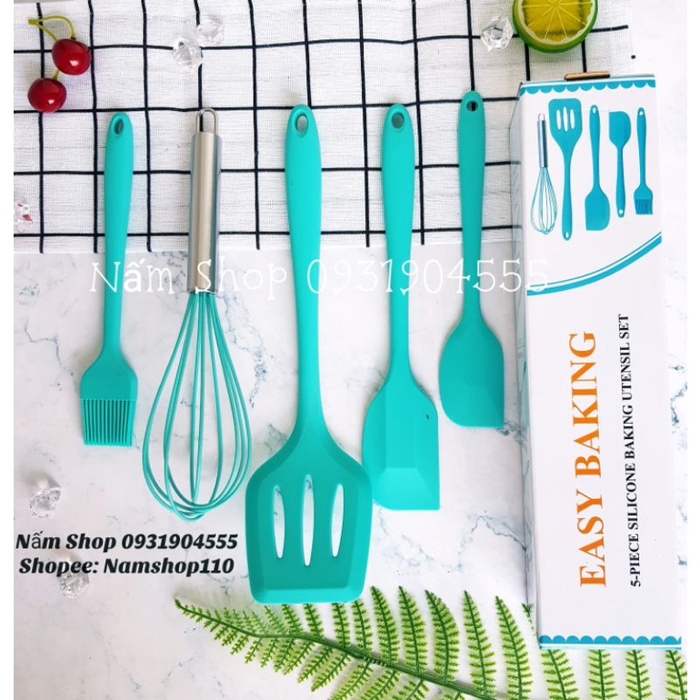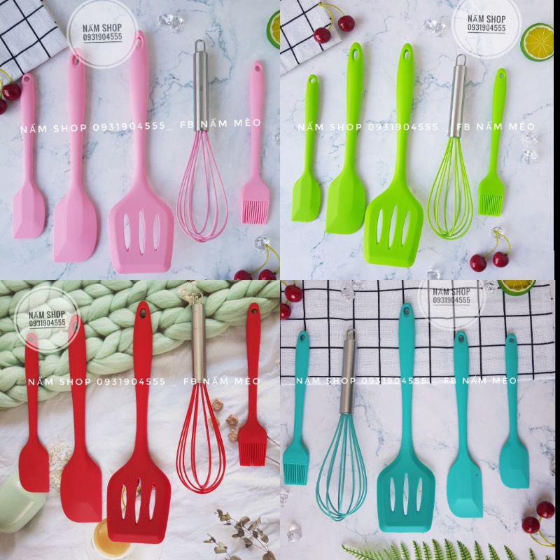 Bộ dụng cụ làm bánh 5 món silicon chịu nhiệt, bộ dụng cụ nhà bếp nấu ăn cho bé cao cấp, phới làm bánh vét bột