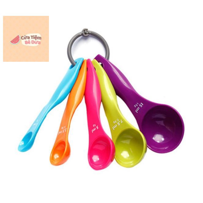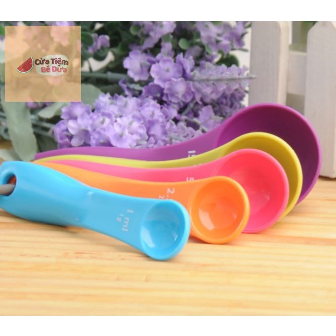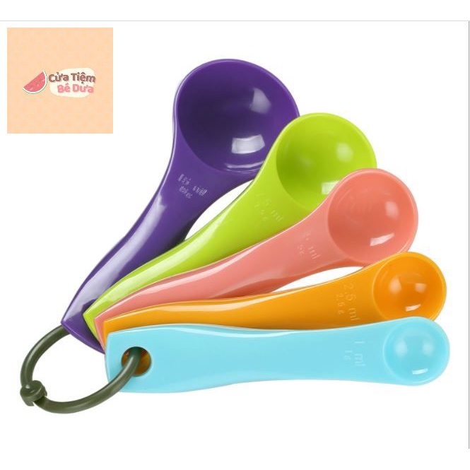 Bộ 5 thìa muỗng đong định lượng nhiều màu sắc nhựa chuẩn từng gam làm bánh bột pha chế - Dưa Kids