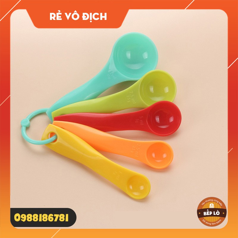 Số lượng: gồm 5 muỗng đong nhựa, đủ màu sắc khác nhauGồm các vạch ml, gr: 15ml, 7.5ml, 5ml, 2.5ml, 1ml