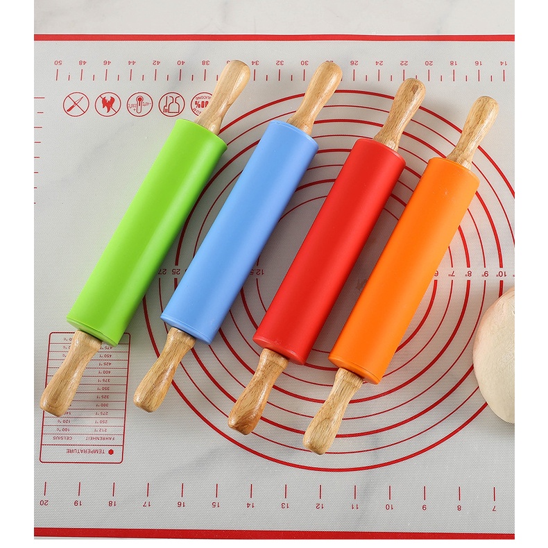 Dụng cụ làm bánh: Cây lăn bột, cán bột silicon cán bằng gỗ chống dính dạng thanh có trục xoay cho nhà bếp