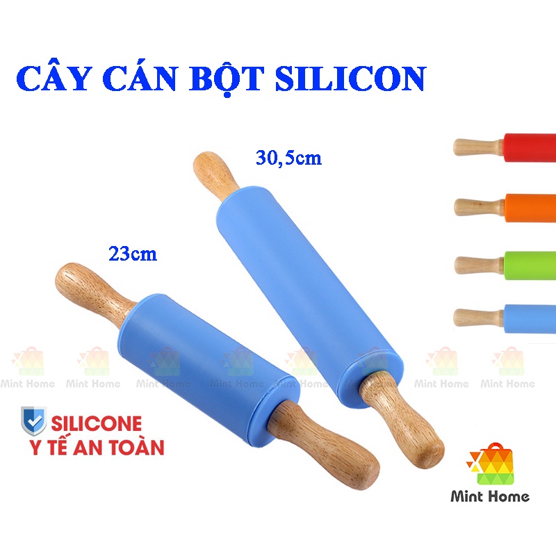 Nhà cửa & Đời sống > Dụng cụ nhà bếp > Cây vét bột & đồ gắp thức ăn || Dụng cụ làm bánh: Cây lăn bột, cán bột silicon cán bằng gỗ chống dính dạng thanh có trục xoay cho nhà bếpCòn hàng