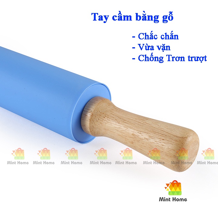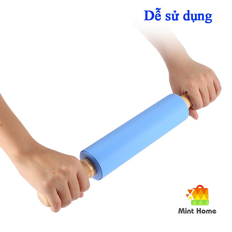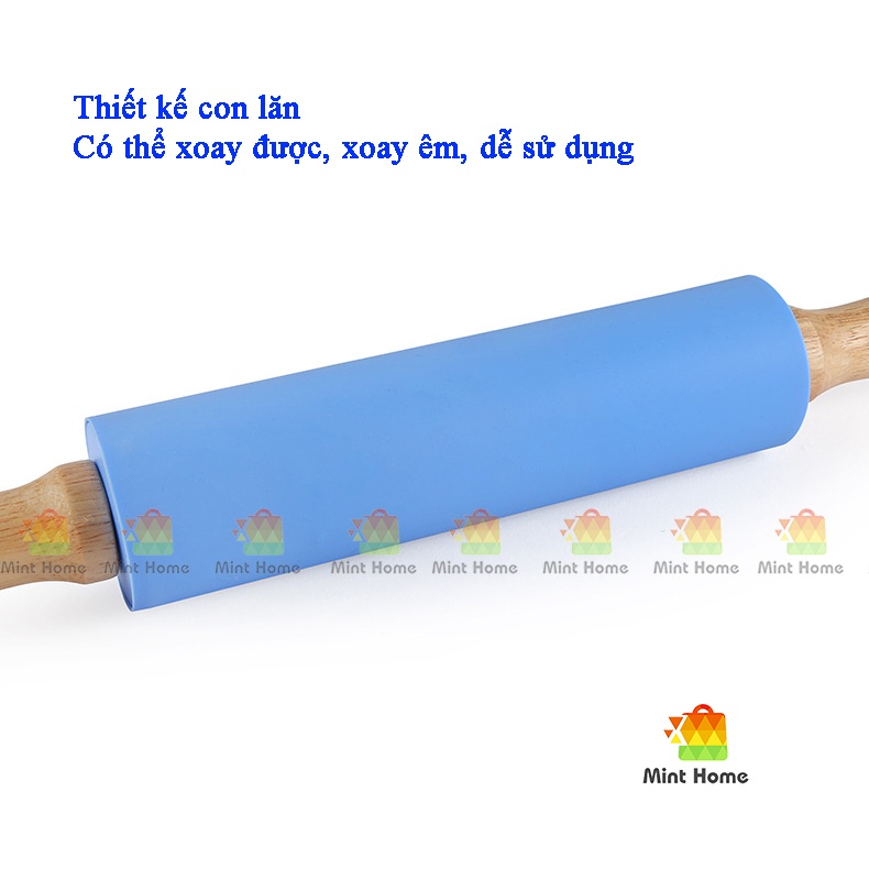 Giới thiệu Dụng cụ làm bánh: Cây lăn bột, cán bột silicon cán bằng gỗ chống dính dạng thanh có trục xoay cho nhà bếp