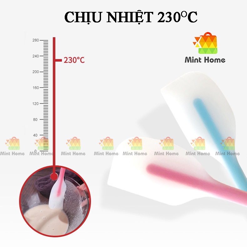 Dụng cụ làm bánh: Cây Spatula phới dẹt trộn bột, đánh trứng phết kem silicon đúc nguyên khối chịu nhiệt muôi lật thức ănĐược làm từ chất liệu siliicon với độ dẻo cao, chịu nhiệt lớn (từ -40 độ C đến 230 độ C), chống dính tốt, linh hoạt hơn bất kì các loại thìa, muỗng khi muốn làm các loại bánh khác nhau.