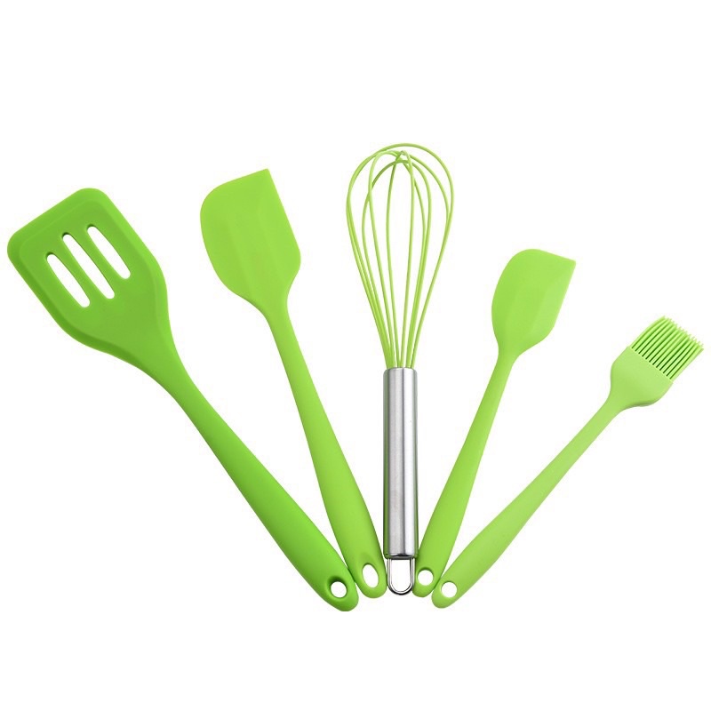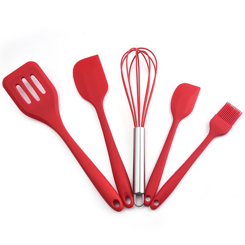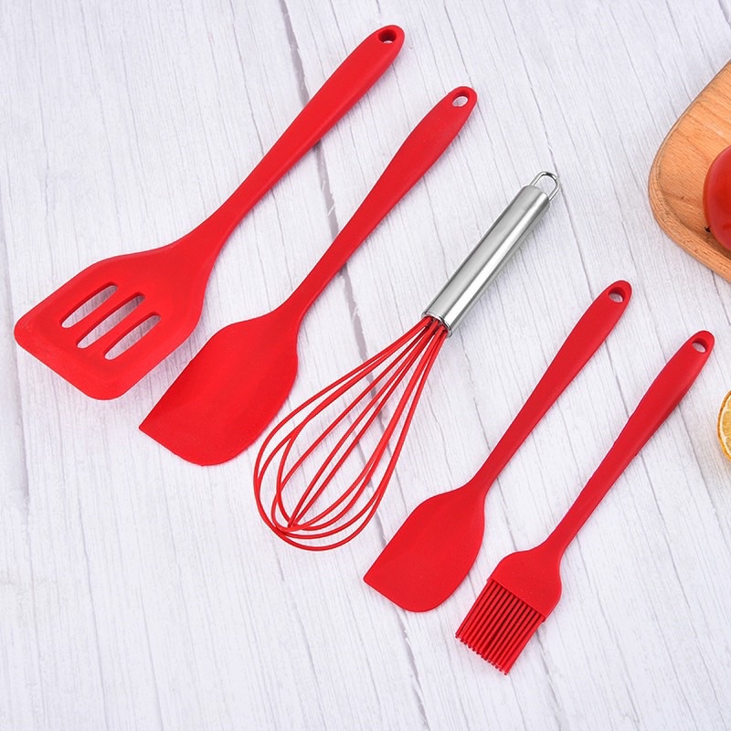 Bộ Dụng Cụ Làm Bánh 5 Món Cho Bé, Phới Làm Bánh Cho BéBộ dụng cụ làm bánh 5 món silicon, nấu ăn, trà sữa, chè gồm chổi, spatula trộn bột, đánh trứng, xẻng silicon chịu nhiệt