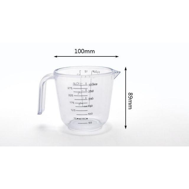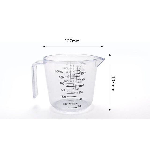 Dụng cụ làm bánh: Cốc đong có chia vạch 300ml và 600mlChất liệu: nhựa abs dày 0,1cm. Cứng cáp, đạt tiêu chuẩn của fda.