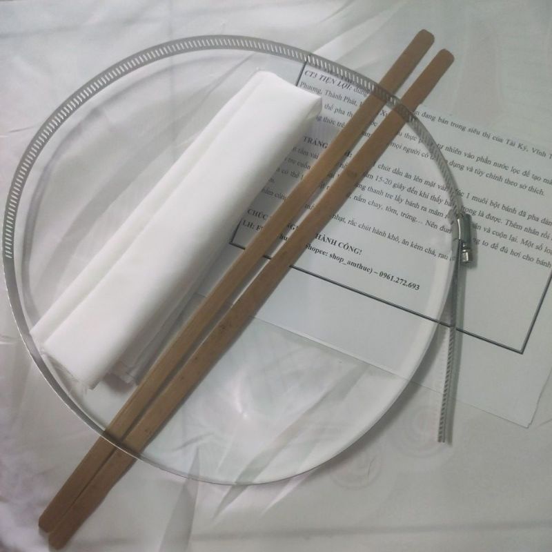 Nhà cửa & Đời sống > Dụng cụ nhà bếp > Dụng cụ nướng & trang trí bánh || Bộ dụng cụ làm bánh cuốn tại nhà (gồm 1 đai xiết inox, 2 vải tráng, 2 thanh tre lấy bánh)Còn hàng