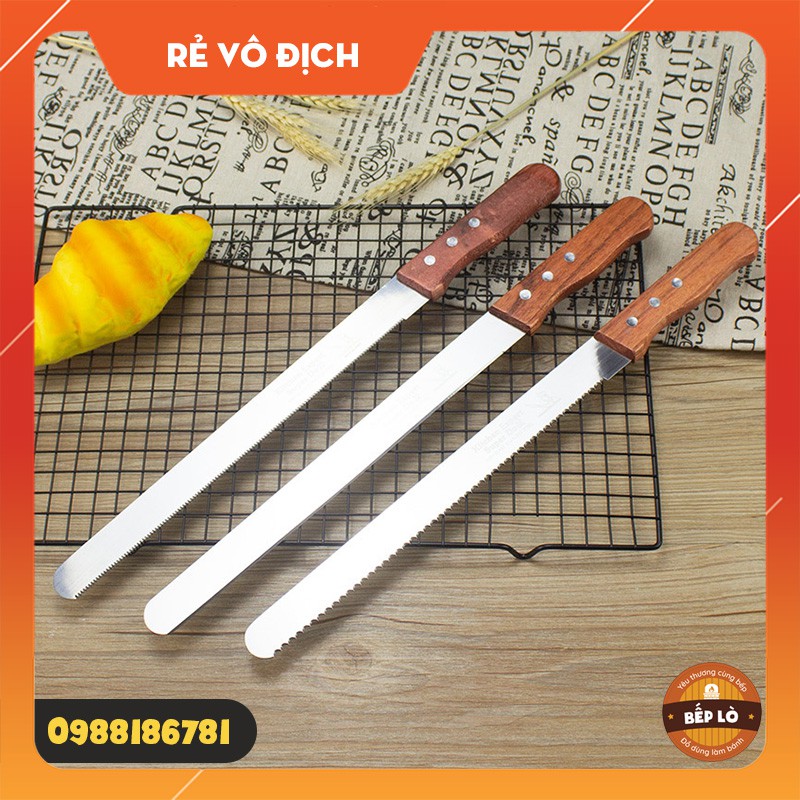 Dụng cụ cắt bánh bằng thép không gỉ 10 inch 12 inch 14 inch lưỡi phẳng - răng nhỏ - răng lớnChất liệu: thép không gỉ, cán gỗ.