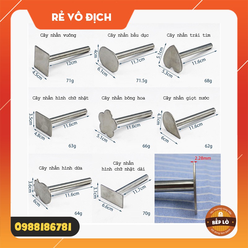 Chú thích thêm: Trong quá trình sản xuất do từng đợt khác nhau, khuôn nhấn và cây nhấn hoa mai có hơi sai lệch 1 chút về kích thước nên có đôi khi nhấn không lọt khuôn mà chỉ nhấn trên bề mặt khuôn.
