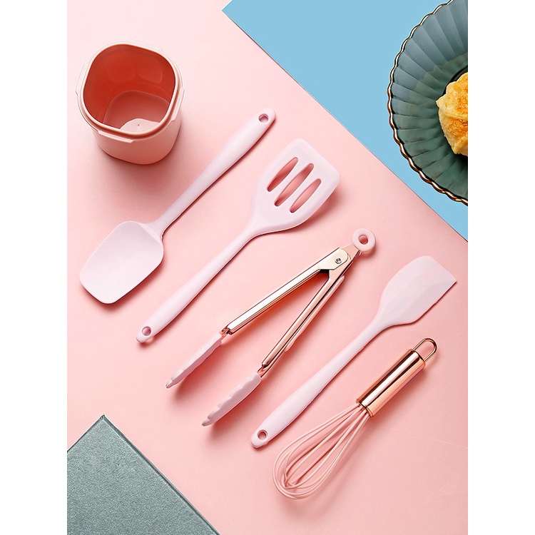 Dụng cụ nấu ăn, bộ dụng cụ 5 món hồng pastel chịu nhiệt cho nhà bếp