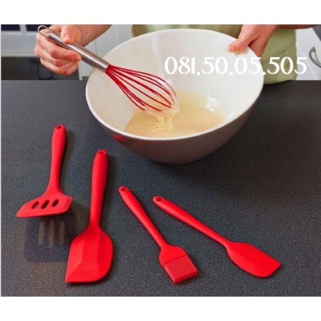 Bộ Dụng Cụ Làm Bánh Silicon Gồm 1 Chổi - 2 cây Vét Bột - 1 Đánh Trứng - 1 Xẻng Silicon