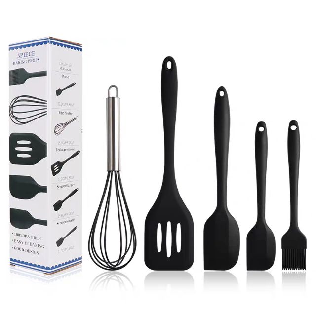 🔸Bộ 5 dụng cụ làm bánh tại HALI JAN được làm từ silicone an toàn đã được cấp phép an toàn vệ sinh thực phẩm kết hợp với tay cầm bằng INOX tạo nên sự bền chắc của bộ dụng cụ làm bánh.🔸Ưu điểm: