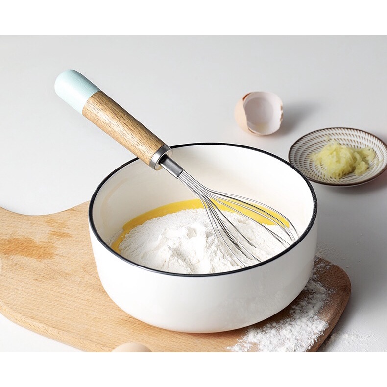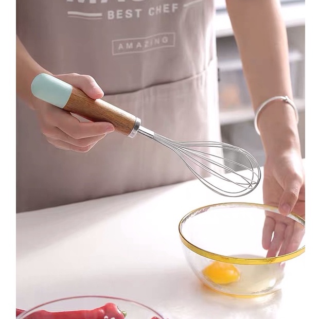 - Dụng cụ làm bếp với phần tay cầm làm bằng cán gỗ tiện lợi thao tác.