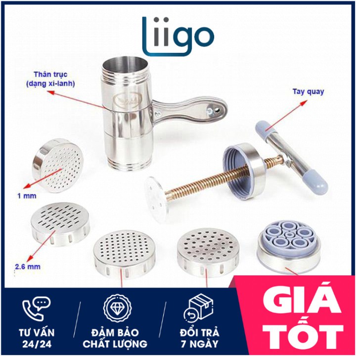 Tiện dụng : Dụng cụ làm bún tươi tại nhà thiết kế với 5 đầu khuôn cho ra 5 loại mì; bún; bánh canh khác nhau, tạo hình dễ dàng tháo lắp vào máy, giúp bạn không còn lo lắng về việc vệ sinh sạch máy sau khi sử dụng