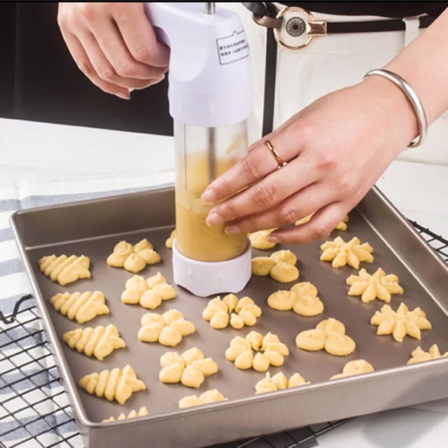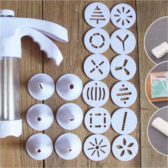 Bộ dụng cụ làm côkie gồm 1 nhấn và 12 mặt khác nhau kèm 6 đầu phunBộ cứng cáp dễ dùng dễ sử dụng