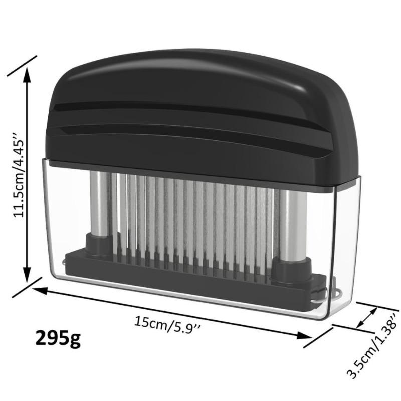 Dụng cụ làm mềm thịt chuyên nghiệp, sản phẩm với lưỡi răng sắc nhọn giúp đầu bếp tiết kiệm thời gian và công sức trong khâu chế biến thực phẩm mà vẫn giữ nguyên được chất lượng món ăn.Các con dao bằng thép không gỉ sắc như dao cạo của tạo ra các lỗ nhập nhiệt nhỏ bên trong thịt, cho phép nhiệt xâm nhập nhanh hơn, giảm thời gian nấu nướng lên đến 40%. Các lỗ nhập nhiệt nhỏ này cũng cho phép nước ướp được hấp thụ hoàn toàn vào thịt trong vòng ít nhất là 5 phút, không cần phải ngâm thịt qua đêm.