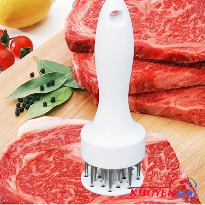 Dụng cụ làm mềm thịt Meat Tenderizer giúp chị em nội trợ làm mềm thịt, làm mềm bít tết trước khi nướng, xào, tẩm gia vị chiên... một cách nhanh chóng.