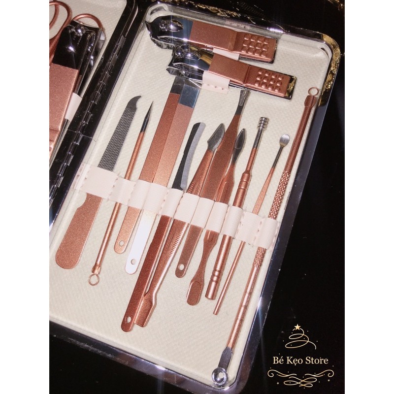 Bộ dụng cụ làm móng gồm: bản hồng 18 món, nâu 12 sản phẩm, với đầy đủ các dụng cụ cắt, dũa, bấm… bạn không cần phải tốn thời gian, tiền bạc để đến tiệm chăm sóc móng nữa. Vừa tiện lợi, nhanh chóng cắt gọn, chỉnh sửa móng theo ý bạn vừa đảm bảo an toàn cho sức khỏe, tránh các nguy cơ lây bệnh truyền nhiễm khi sử dụng chung các dụng cụ này ở tiệm.