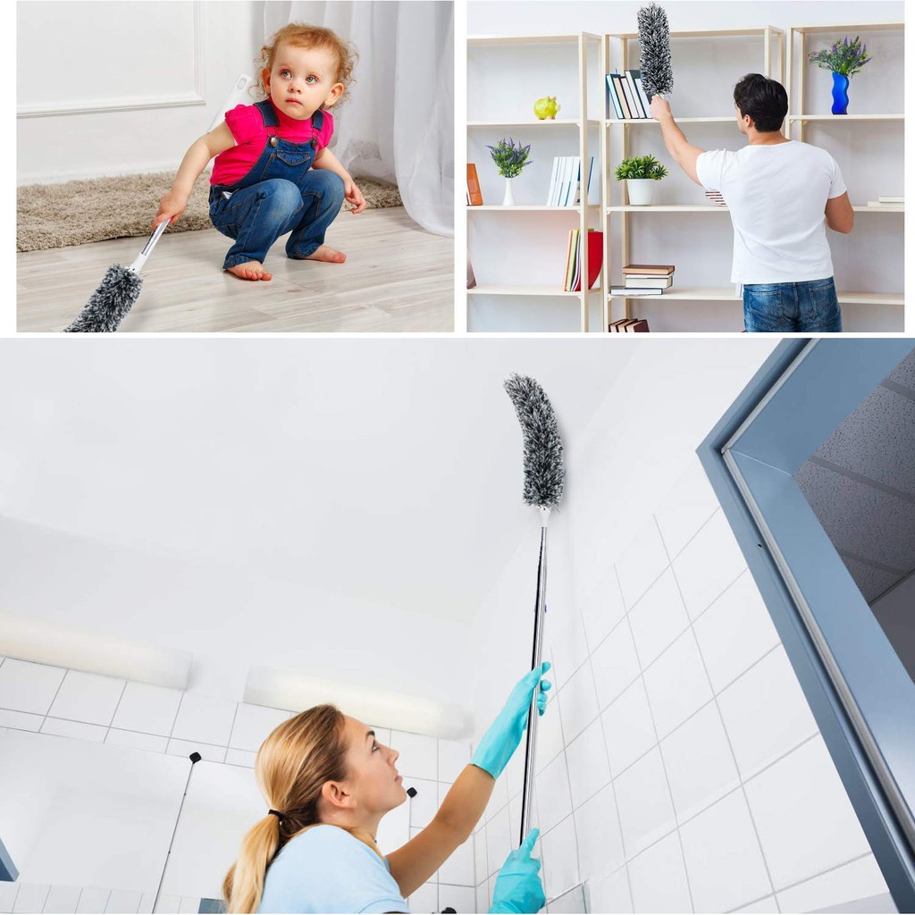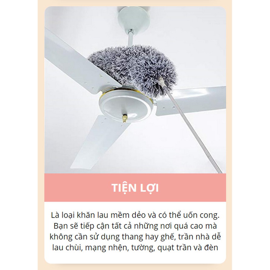 - Là loại khăn lau mềm dẻo và có thể uốn cong. Bạn sẽ tiếp cận tất cả những nơi quá cao mà không cần sử dụng thang hay ghế, trần nhà dễ lau chùi, mạng nhện, tường, quạt trần và đèn.
