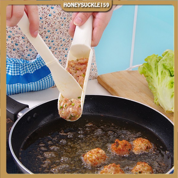Thay vì dùng tay viên thịt xay, vừa tốn thời gian vừa bẩn tay, bạn có thể sử dụng bộ đôi “muỗng - xẻng” này. Trong hình dạng chiếc xẻng dài và hẹp, nó sẽ giúp bạn xúc thịt gọn gàng, rồi dùng muỗng dẹp để chia thành từng viên nhỏ. Bộ dụng cụ rất tiện lợi để trực tiếp chế biến món thịt viên chiên, nấu canh, lẩu,…- Chất liệu: Nhựa ABS an toàn.