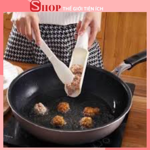 Dụng cụ làm thịt viên, cá viên siêu nhanh thiết kế hai đầu, gồm 1 đầu nhỏ và 1 đầu to + 1 thìa gạt, dụng cụ giúp bạn tạo những viên thịt đều nhau mà không lo bẩn tay.