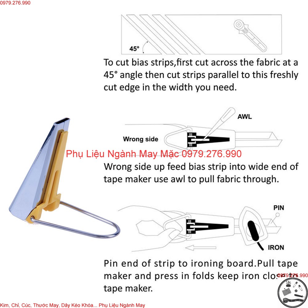 Dụng cụ được sử dụng để ủi viền trước khi mayThường sử dụng kết hợp với chân vịt bọc viền nhựa máy may gia đình để được viền đẹp nhất