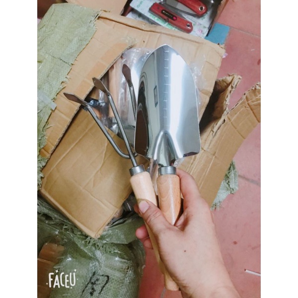 Giới thiệu Bộ Dụng Cụ Làm Vườn 2 Món, Xẻng Trồng Cây Cuốc Và Cào Bộ Xẻng Làm Vườn chất thép trắng
