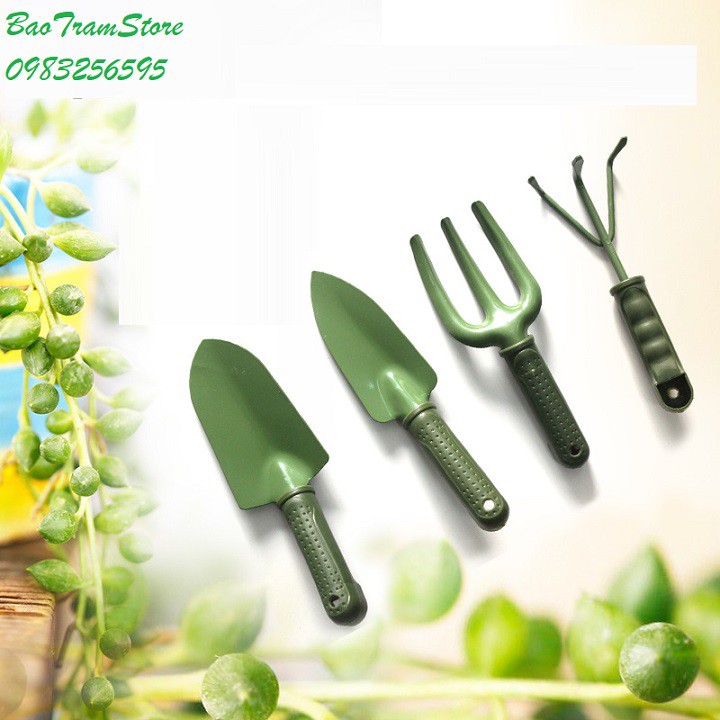 Bộ dụng cụ làm vườn 4 chi tiết màu xanh bộ đội chất lượng cao