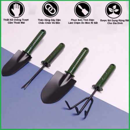 Bộ dụng cụ làm vườn 4 món - thép xanh, loại thép đặc chắc chắn