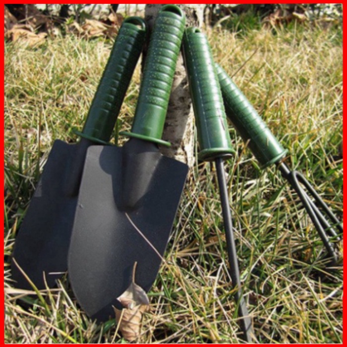 Bộ dụng cụ gồm: 1 xẻng xúc, 1 cào đất, 1 xẻng xới, 1 dùi