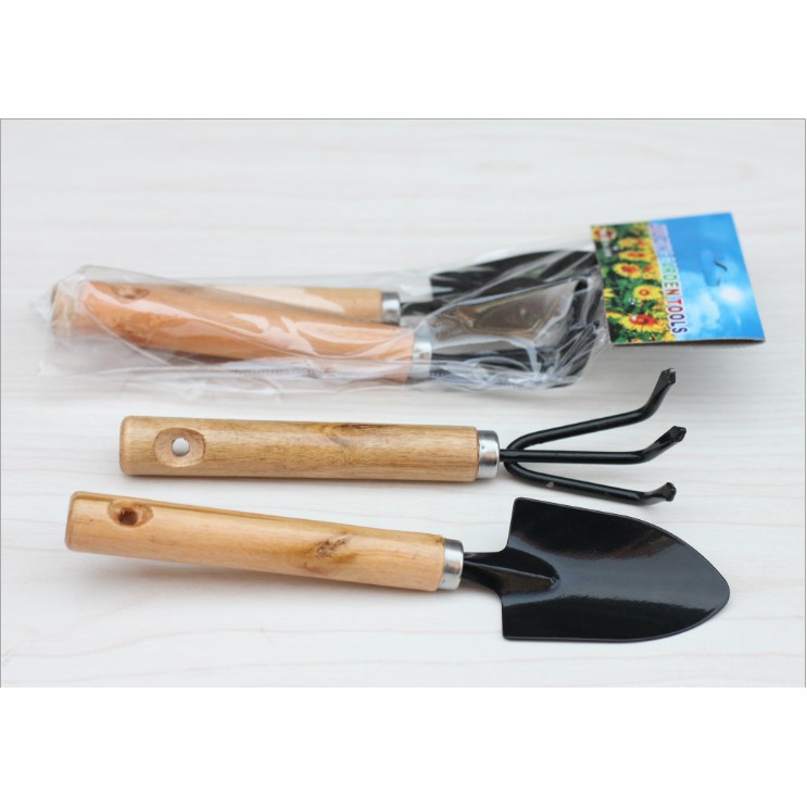 Bộ 3 dụng cụ làm vườn chuyên nghiệp, cán gỗ chắc chắn.