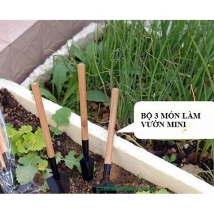 Nhà cửa & Đời sống > Làm vườn > Dụng cụ làm vườn || Bộ Dụng Cụ Làm Vườn Mini 3 Món Tiện Dụng - với 3 dụng cụ gồm: 1 xẻng xúc đất, 1 cấy xới đất và 1 bàn cào đấtCòn hàng
