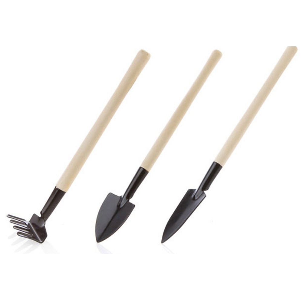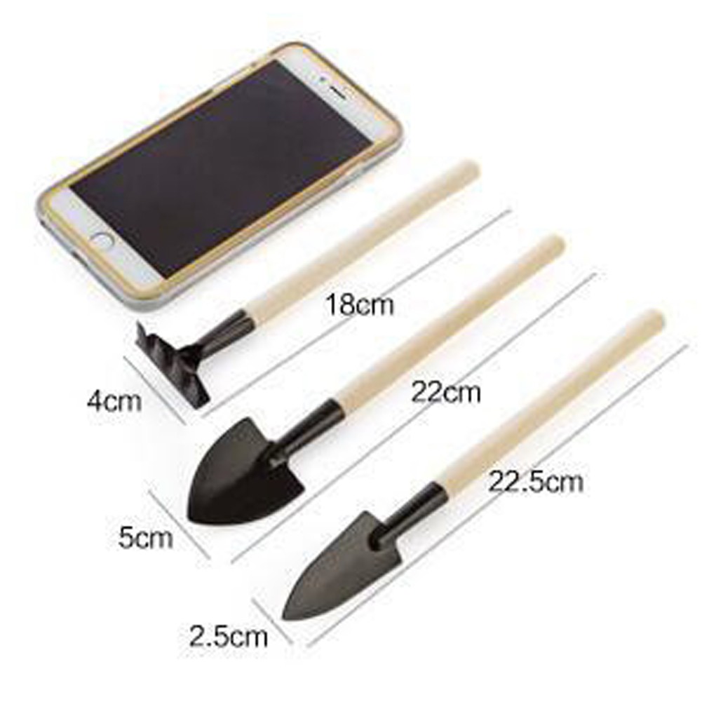 Bộ trợ giúp tốt nhất dành cho thiết kế sân vườn gồm 3 bộ công cụ Mini gồm ba, xẻng, bay và cào.