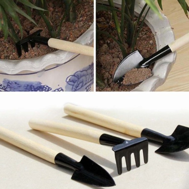 ** Bộ dụng cụ làm vườn mini với 3 dụng cụ gồm: 1 xẻng xúc đất, 1 cấy xới đất và 1 bàn cào đất.** Bộ dụng cụ gọn nhẹ, thuận tiện cho việc chăm sóc các tiểu cảnh mà không làm bẩn tay.