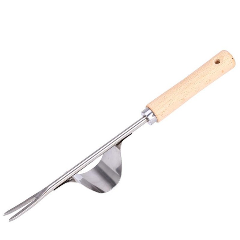 Sử dụng cho : Mũi nhọn nĩa hình chữ Y có thể dễ dàng cắm vào rễ cây để nhổ lên. Tay cầm bằng gỗ có lỗ để treo lên