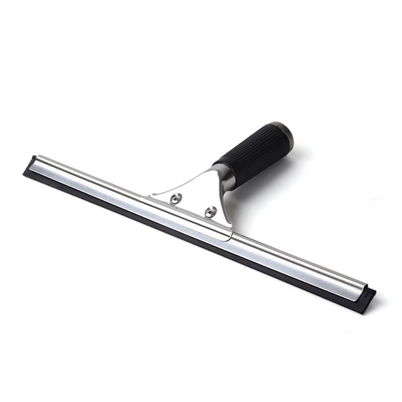 - Bước 2: Dùng tay gạt kính inox có lưỡi cao su, gạt sạch nước bẩn xuống. Khi gạt nên gạt từ mép trên tấm kính xuống mép dưới tấm kính theo phương thẳng đứng để đạt được hiệu quả cao nhất.