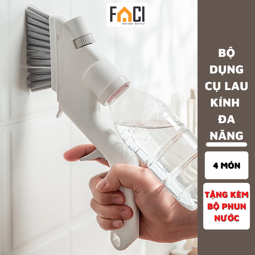 Bộ dụng cụ lau kính lau cửa sổ 4 món đa năng kèm bộ phun nước tiện lợi