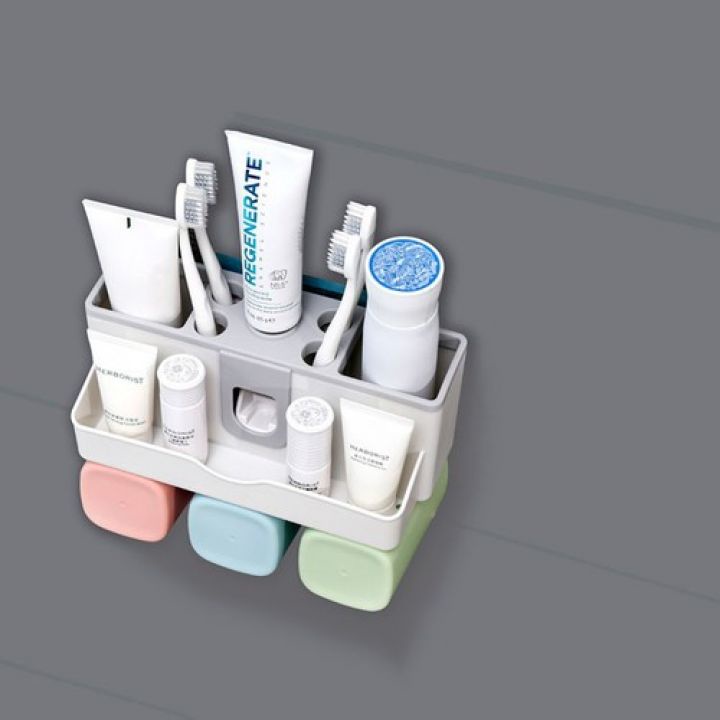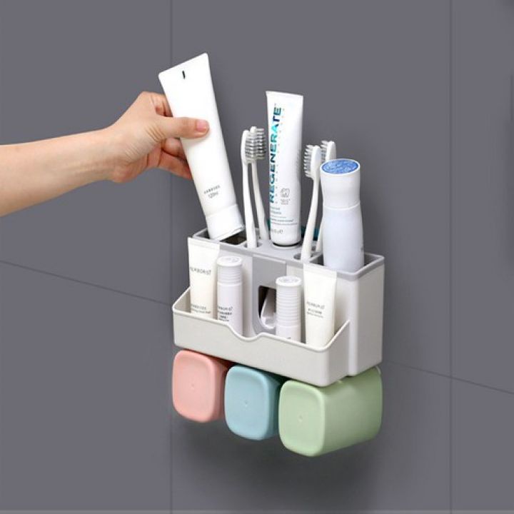 Giới thiệu Dụng cụ lấy kem đánh răng thông minh, Bộ Nhả Kem 3 Cốc, kệ để đồ phòng tắm, nhả kem nhanh chóng, tiết kiệm