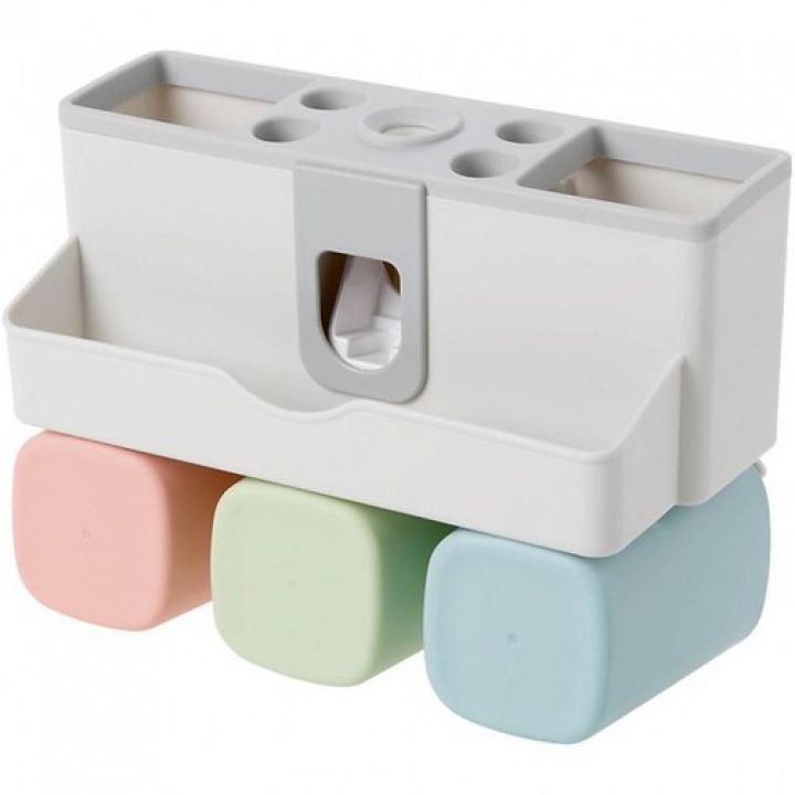 Dụng cụ lấy kem đánh răng thông minh, Bộ Nhả Kem 3 Cốc, kệ để đồ phòng tắm, nhả kem nhanh chóng, tiết kiệm