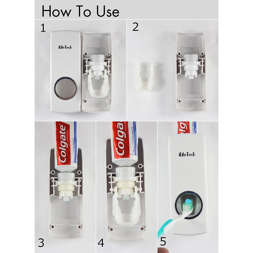 - Tự động xịt kem đánh răng lên bàn chải chỉ bằng lực nhấn nhẹ.