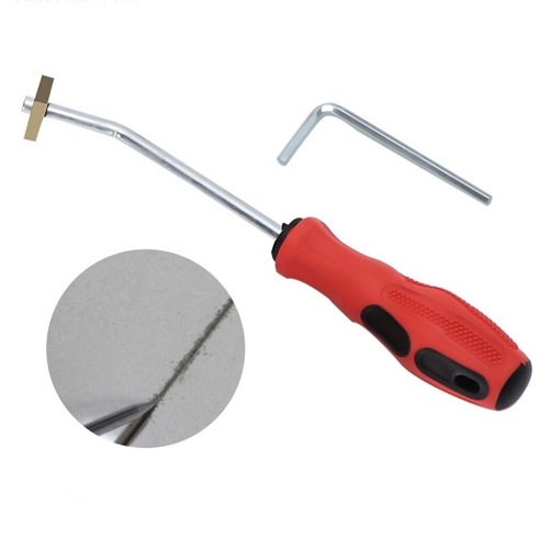 Tua vít cạo kẻ gạch có thể dùng để loại bỏ, cạo sạch ron gạch cũ như xi măng trắng, bột bả hoặc chất bẩn trên ron gạch trước khi trát mạch xi măng trắng mới hoặc cạo sạch silicon trước khi bắn keo hoặc loại bỏ keo cũ.